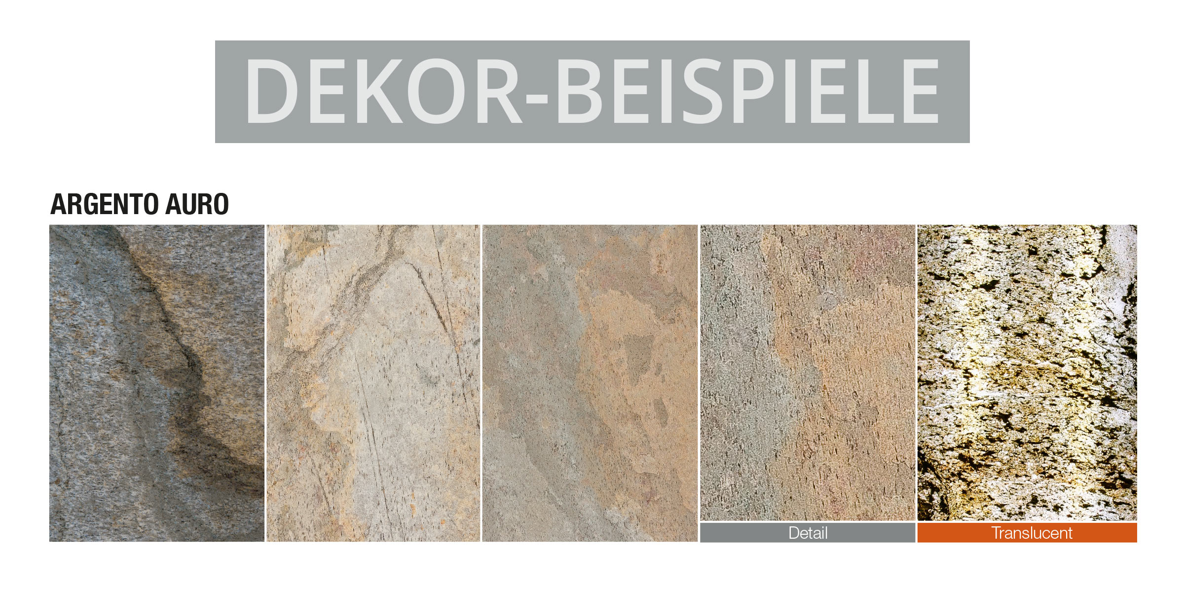 Argento Auro ist ein Glimmerschieferdekor mit einer echten Steinoberfläche. Der besondere Glimmereffekt entsteht durch einen erhöhten Anteil an Feldspat. Insgesamt ist die Oberfläche härter und weist eine stärkere Struktur auf, somit eignet sich dieses Material besonders für Wände als auch für Fußböden. Meistens bleibt der Glimmerschiefer sehr farbstabil in der Maserung der Oberfläche.