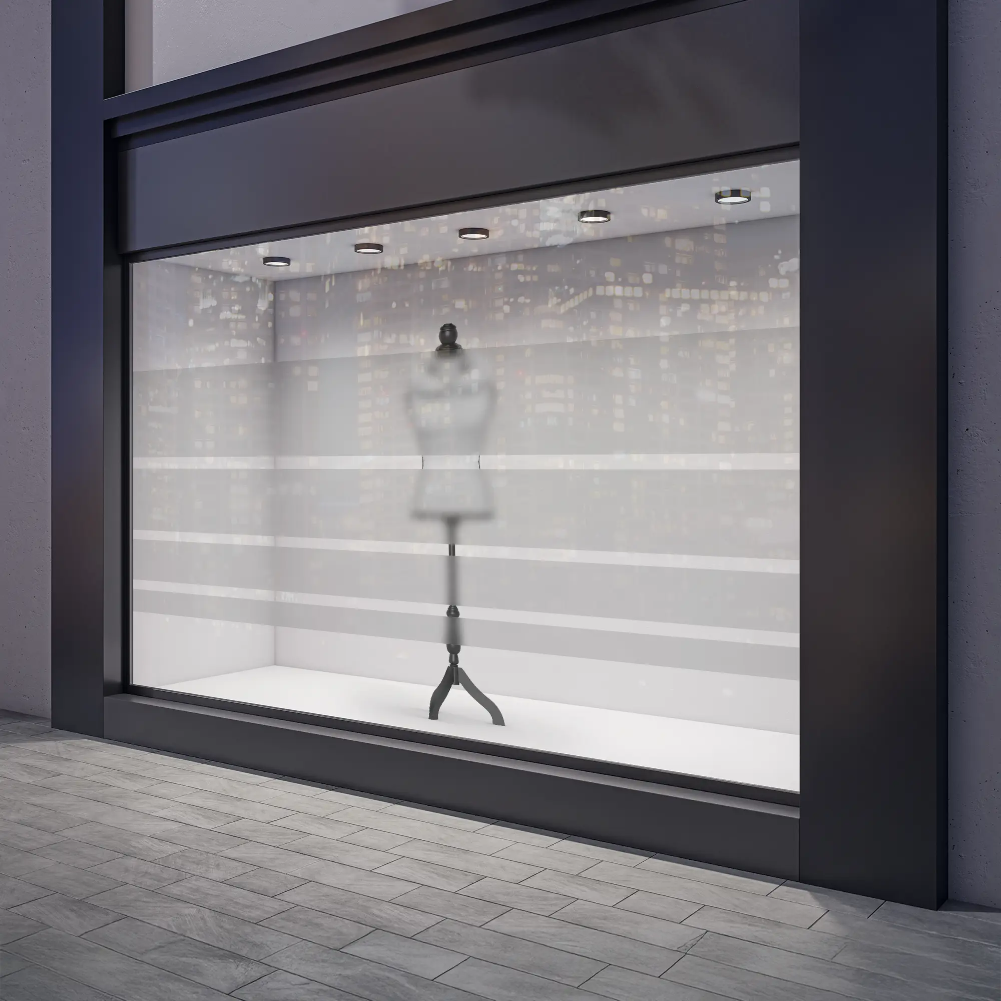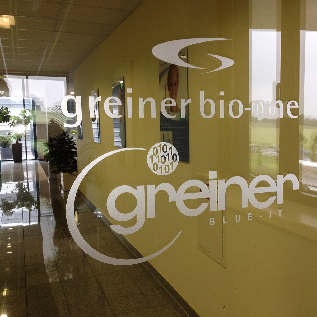 Konturgeschnittene Sandstrahlfolie mit seidenmatter, transparenter Oberfläche für die Verklebung auf Glas – vermittelt den Eindruck einer sandgestrahlten Oberfläche. Wird auch als Glasdekorfolie oder Satinatorfolie bezeichnet.