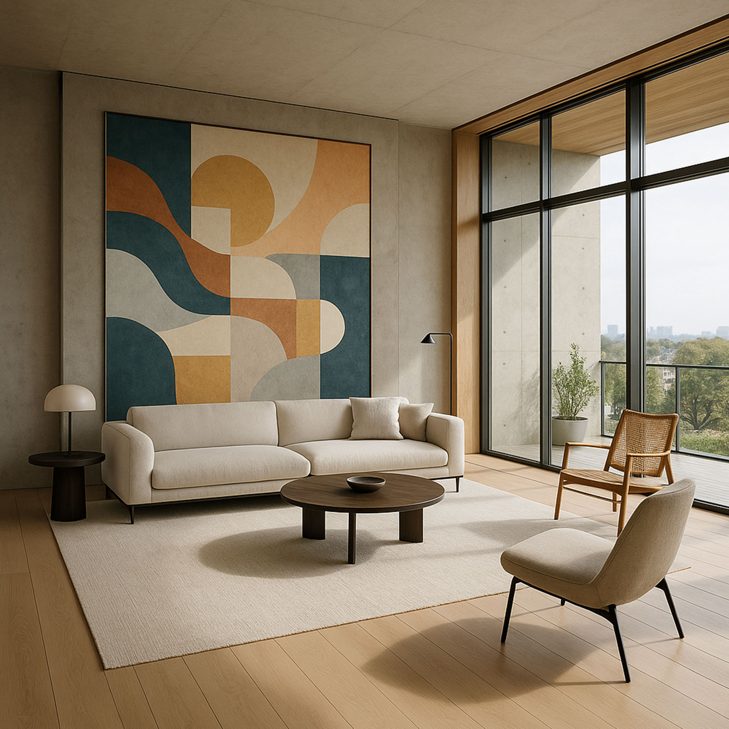 Unsere Textilrahmen vereinen hochwertige Verarbeitung mit wohnlichem Design. Ob als Wandgestaltung im Wohnzimmer oder als stilvolles Deckenmotiv – die austauschbaren Textildrucke ermöglichen es, Ihr Zuhause immer wieder neu zu inszenieren. Ein elegantes System für individuelle Atmosphäre und zeitlose Wohnästhetik.