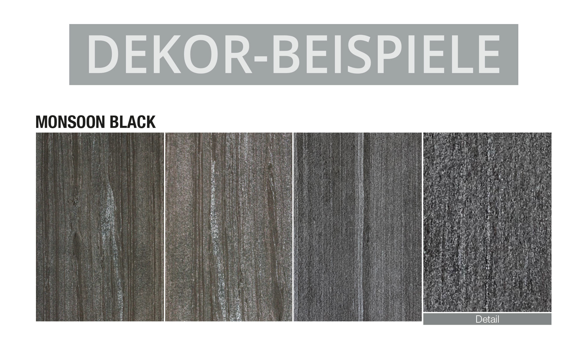 Monsoon Black ist ein Marmordekor mit einer echten Steinoberfläche.