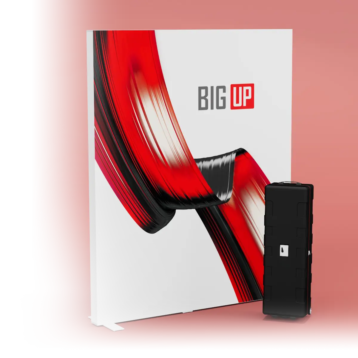 BIGUP™ liefert maximale Wirkung mit minimalem Aufwand. Als größter tragbarer Rahmen auf dem Markt (bis zu 10 m Breite) zieht er alle Blicke auf sich. Das stabile, modulare System ist leicht zu transportieren und garantiert einen schnellen, werkzeuglosen Aufbau für Messen und Großwerbung.