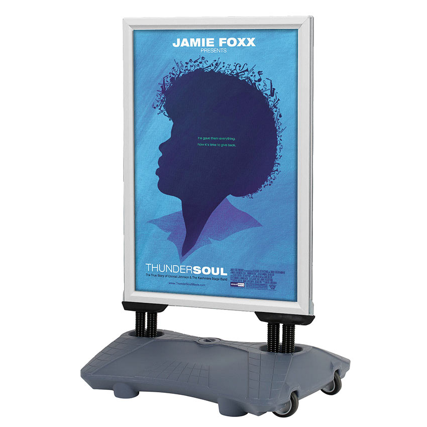 Dieser robuste Kundenstopper mit 40 mm Aluprofilen und abgerundeten Kunststoffecken. Die entspiegelten APET-Frontplatten mit schwarzer Gummikante schützen vor Feuchtigkeit. Rostgeschützte Federn sorgen für Stabilität bei Wind.