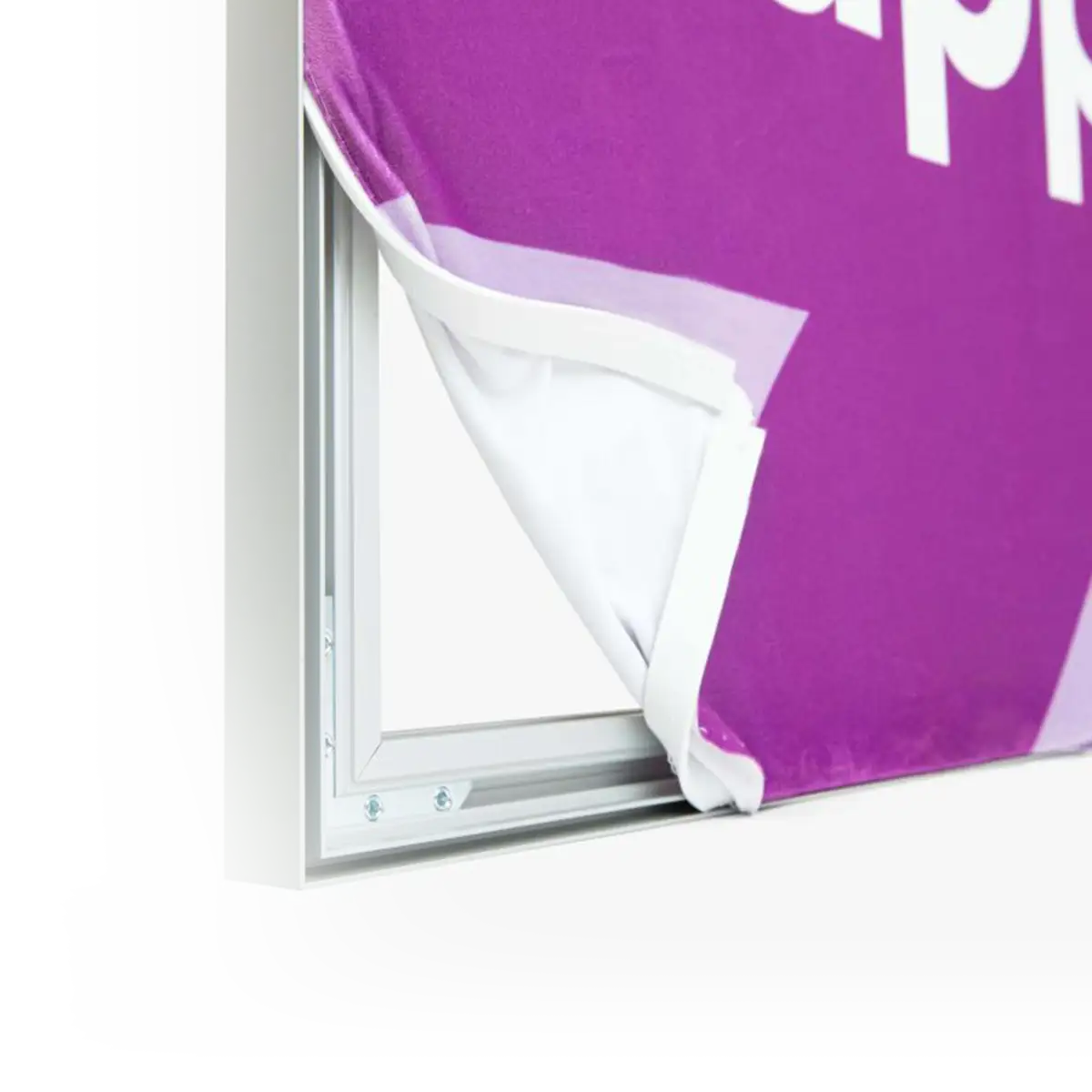 Wählen Sie selbst die gewünschte Größe und Rahmenfarbe. Wählen Sie zwischen einem silbernen, schwarzen oder weißen Profil.Einfach auszuwechselnEine anderes Design für jede Saison, Werbeaktion oder Kampagne. Ein Kedertuch hat rundherum eine flache Silikonkeder, mit der sie das Tuch ganz einfach in den Rahmen spannen können.in 3 Rahmenfarben erhältlichin 19mm oder 27mm Profilstärke erhältlichauf Wunsch auch mit Lochbohrungen alle 30cm