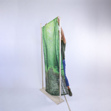 Ökologisches Display für Stoffbanner mit Hohlsaum