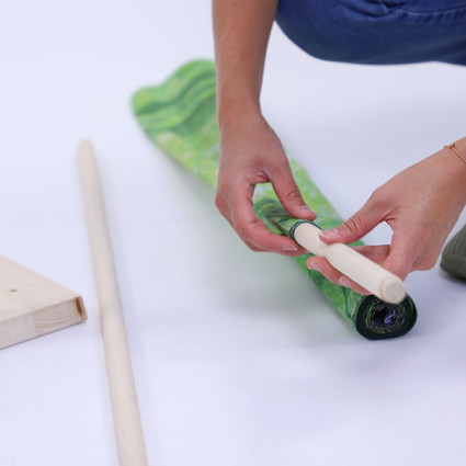 einfach Basis mit der Struktur zusammenschrauben, Hohlsaum einschieben und fertig!