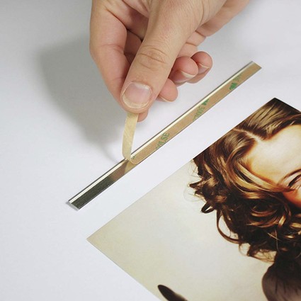 Metall-Leiste mit aufgebrachtem Doppelkleber zur einfachen Bannermontage ohne Presse.