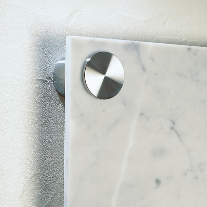 Hochwertiger Edelstahl, elegante Facettenoptik, Stecksystem mit Arretierung. Halter an der Wand befestigen, Paneel auflegen, Kopf durch das Paneel in den Halter stecken und mit seitlicher Madenschraube im Halter gegen manipulation sichern.